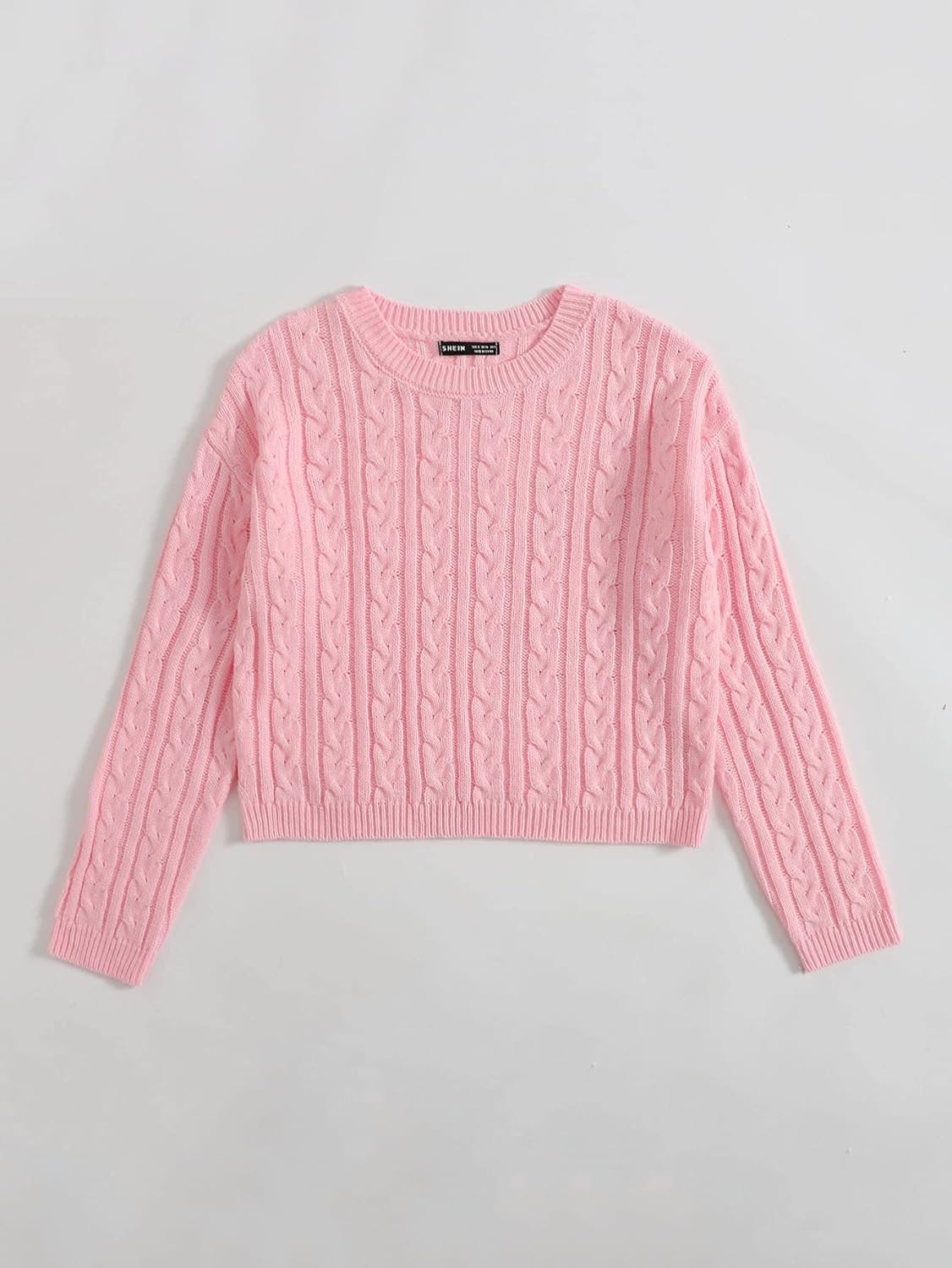 SBicep Length : 11 inchBust : 35.4 inchCuff : 7.1 inchLength : 18.5 inchShoulder : 20.5 inchSleeve Length : 18.5 inchMBicep Length : 11.6 inchBust : 37 inchCuff : 7.5 inchLength : 18.9 inchShoulder : 21.3 inchSleeve Length : 18.9 inchLBicep Length : 12.6 inchBust : 39.4 inchCuff : 8.1 inchLength : 19.5 inchShoulder : 22.4 inchSleeve Length : 19.4 inchColor: White,Blue,Baby Pink,Orange,BlackStyle: CasualPattern Type: PlainType: PulloversNeckline: Round NeckSleeve Length: Long SleeveSleeve Type: Drop ShoulderLength: CropFit Type: Regular FitFabric: High StretchMaterial: AcrylicComposition: 100% AcrylicCare Instructions: Machine wash or professional dry cleanSheer: No