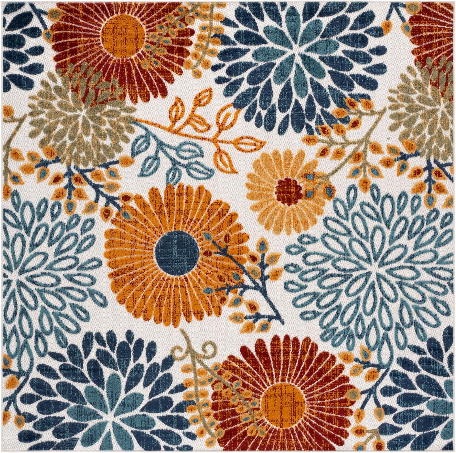 Cabana indoor/ outdoor rugs offer a selection of elaborate floor coverings for any busy area of the home, inside or out. Playful florals, lush vines, and fanciful geometric motifs brim with coastal vibes on any deck, porch, or patio. Rug sizes may vary slightly.