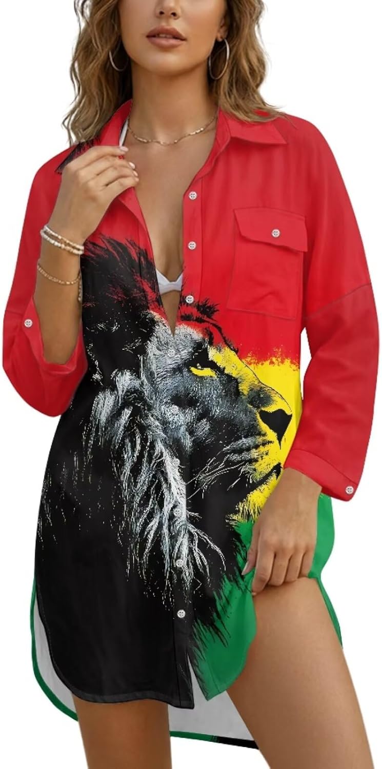 Embrace summer freedom and island vibes with a shirt dress that goes wherever you do—from the sandy shores to the front row of the main stage. Inspired by timeless button-down silhouettes, this long-sleeve shirt dress features an exclusive reggae festival-inspired pattern, along with a classic lapel collar, utility chest pocket, and curved hem that flatters every body type. Every detail is crafted for effortless, festival-ready style with a relaxed yet polished cut. We’ve chosen a lightweight, breathable polyester fabric that feels soft against the skin and keeps you cool as you dance to rhythm-filled beats under the sun. The long sleeves offer thoughtful sun protection, making this piece as practical as it is vibrant. Whether you’re swaying at a sunset jam session, browsing artisan booths at a reggae festival, or sipping something chilled by the beach, this dress keeps you comfortable and composed all day long. But it’s not just for festivals. Throw it on over a tank top with sneakers or sandals, and it becomes that easy, go-to piece you’ll reach for again and again—whether you’re heading to a casual brunch or a laid-back summer outing. We offer seven sizes: S, M, L, XL, 2XL, 3XL. To ensure the best fit, please refer to our size chart before ordering, which includes detailed measurements for bust, length, and sleeve length. Note: Slight size deviations (1-2 cm) and color differences may occur due to manual measurements and screen display settings